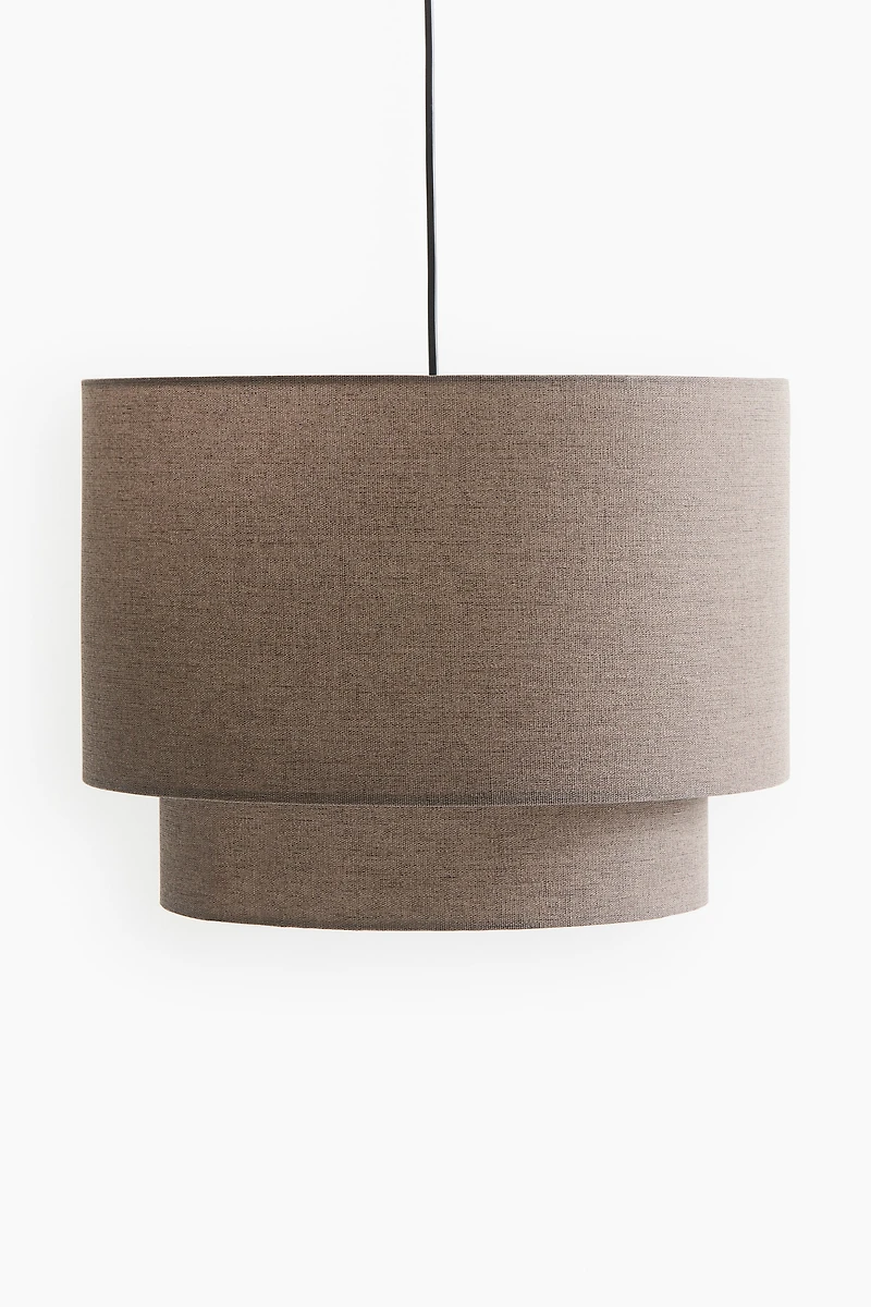 Cylindrical-shaped pendant lamp with a welcoming glow. Cord with a plastic switch. E26 socket. Max 15 W LED. Light source not included. Height 11 1/2 in. Diameter at top 15 3/4 in. Length of cord 5 ft. 3 in.