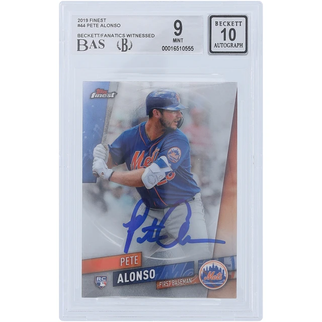 Pete Alonso New York Mets Autographed 2019 Topps Finest #44 Beckett Fanatics Witnessed Authenticated 9/10 Rookie Card