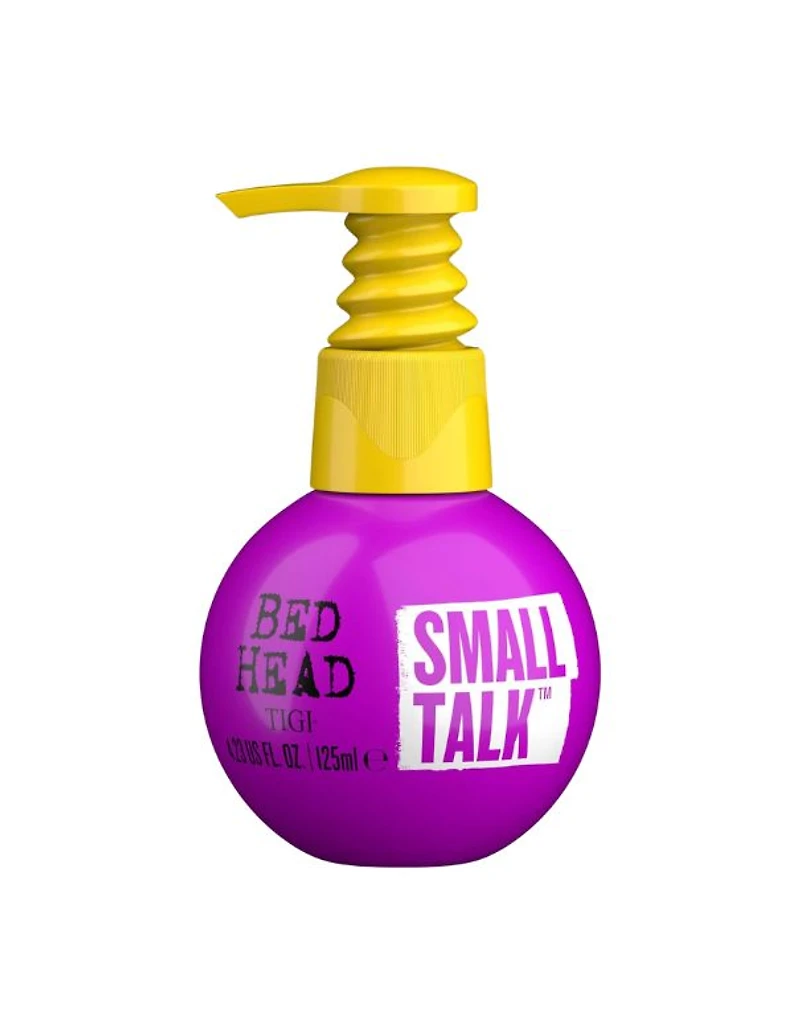 BED HEAD Small Talk est l'arme secrète pour des cheveux incroyablement épais et volumineux. Amplifiez le corps, créez du volume et obtenez des cheveux plus épais en toute simplicité, tout en domptant les frisottis et les mèches rebelles. Cette crème coiffante nourrit et hydrate les cheveux tout en leur apportant du volume pour une chevelure resplendissante. Utiliser Appliquez 1 à 3 doses, selon la longueur de vos cheveux, sur cheveux essorés. Peignez pour bien répartir le produit, puis séchez au sèche-cheveux pour activer la texture et donner du volume. Astuce : pour des ondulations souples, séchez au diffuseur en partant du bas. Ingrédients EAU (AQUA/EAU), CYCLOPENTASILOXANE, COPOLYMÈRE D'ACRYLATES VP/DMAPA, POLYQUATERNIUM-37, EXTRAIT DE GRAINES D'HELIANTHUS ANNUUS (TOURNESOL), PARFUM, HUILE DE GRAINES DE SIMMONDSIA CHINENSIS (JOJOBA), HUILE DE GRAINES D'HELIANTHUS ANNUUS (TOURNESOL), DICAPRYLATE/DICAPRATE DE PROPYLÈNE GLYCOL, PHÉNOXYÉTHANOL, ALCOOL CÉTÉARYLIQUE, EXTRAIT DE BACOPA MONNIERA, PANTHÉNOL, POLYSORBATE 60, DIMÉTHICONOL, CHLORURE DE BENZALKONIUM, PPG-1 TRIDECETH-6, COPOLYMÈRE DE STYRÈNE/BUTADIÈNE, BENZOATE D'ALKYLE EN C12-15, EDTA DISODIQUE, DILAURATE DE PEG-4, LAURATE DE PEG-4, SORBITAN OLÉATE, ACIDE CITRIQUE, IODOPROPYNYL BUTYLCARBAMATE, PEG-4, BUTYLÈNE GLYCOL, TOCOPHÉROL, HEXYL CINNAMAL, LINALOL