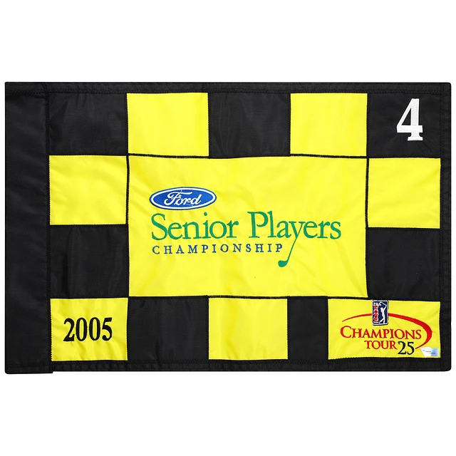 PGA TOUR Event-Used #4 Yellow and Black Pin Flag from SENIOR PLAYERS Championship on July 7th to 10th 2005