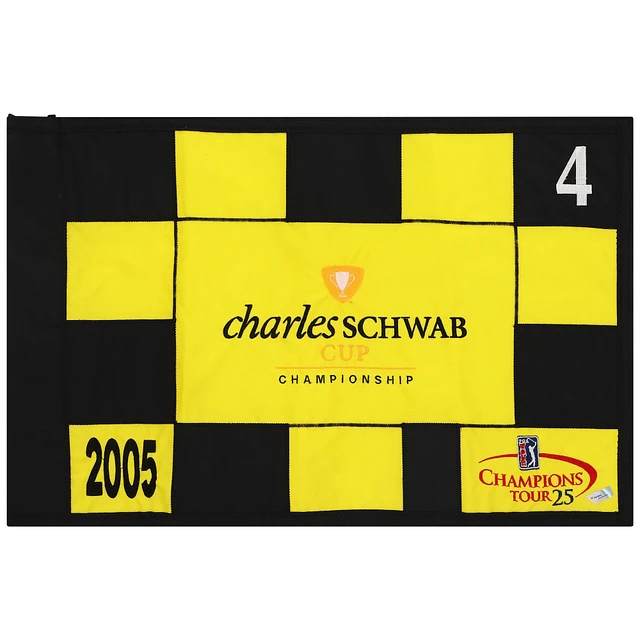 PGA TOUR Event-Used #4 Yellow and Black Pin Flag from The Charles Schwab Cup Championship on October 2nd to 30th 2005