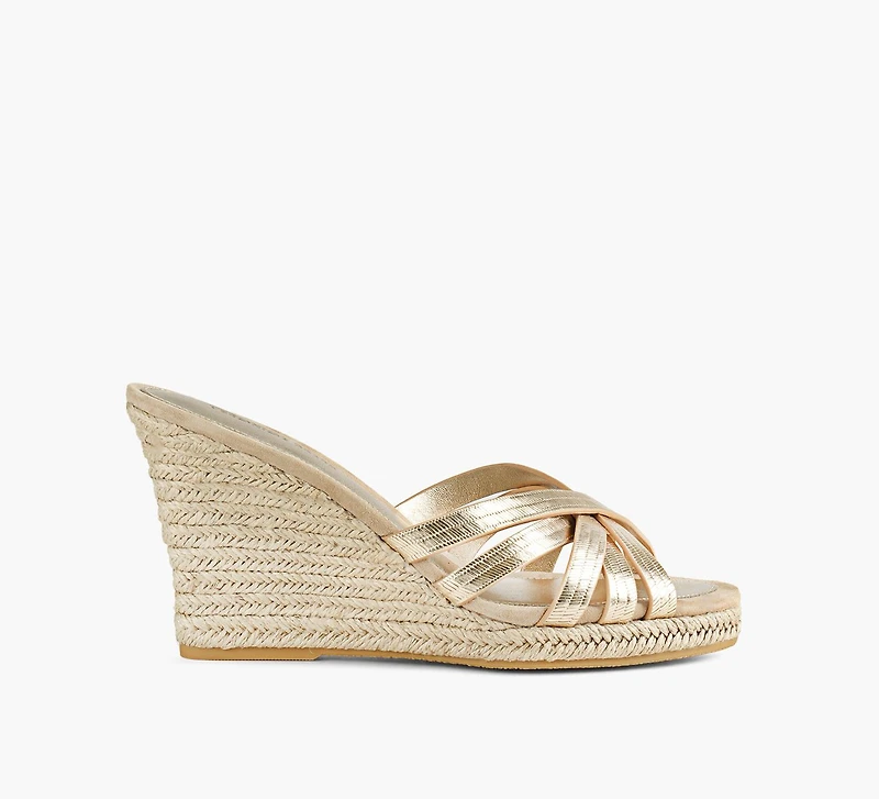 - Slip-on wedge sandal silhouette