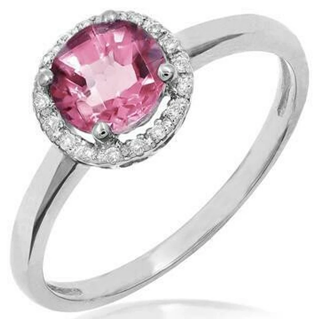 Pink Topaz Ring with Diamond Halo 14KT Gold