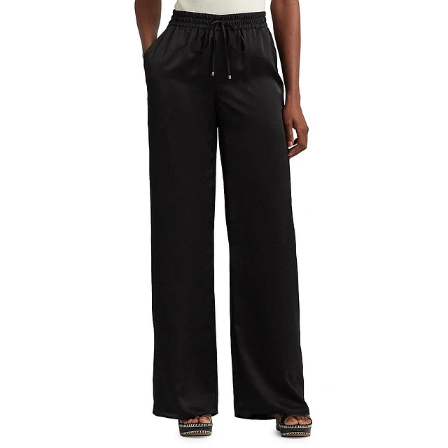 Pinstriped Linen Drawstring Wide-Leg Pants
