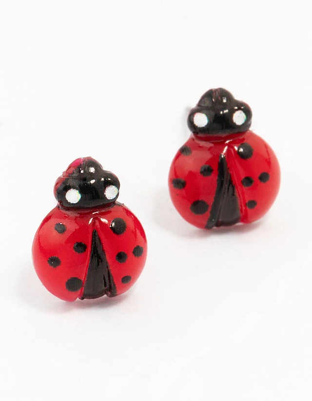 Child's Red and Black Enamel Ladybug Stud Earrings in 14K Gold