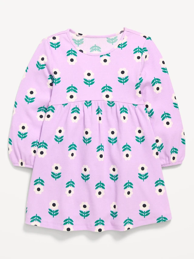 Printed Long-Sleeve Ribbed Dress for Toddler Girls