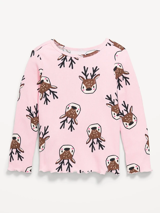 Printed Long-Sleeve Ribbed Top for Toddler Girls
