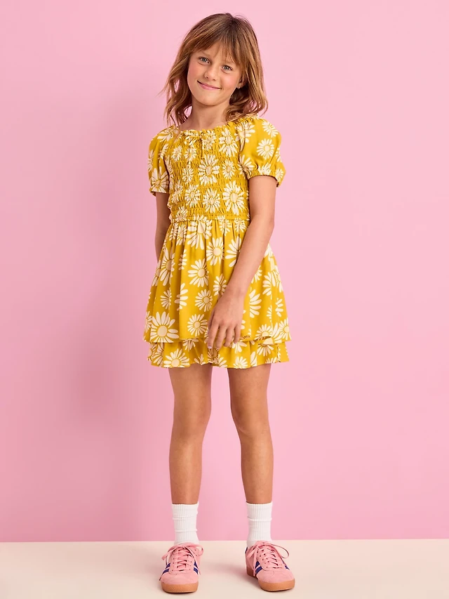 Printed Puff-Sleeve Smocked Dress for Girls