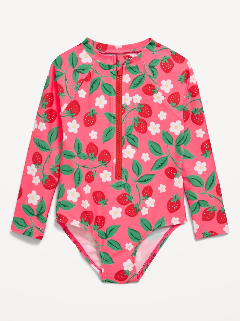 Printed Zip-Front Rashguard One-Piece Swimsuit for Toddler Girls