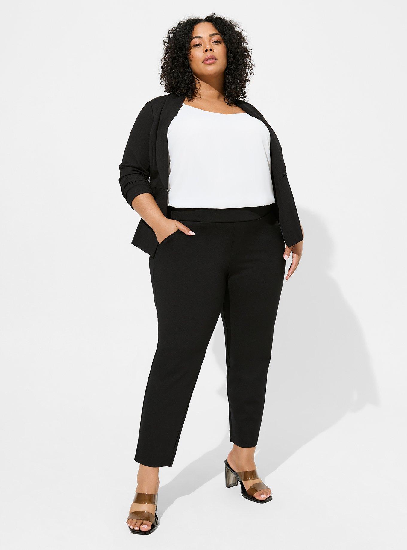 FIT High rise. Eased through the hip and thigh with a tapered leg. Pull-on elastic waist. Hits just above the ankle. Inseams: Ex-Short 25'', Short 27'', Regular 29'', Tall 31'', Ex-Tall 33''. MATERIALS + CARE Luxe Ponte knit fabric: Our signature work (any) wear fabric with office-approved tailoring, WFH stretch and comfort, and curve-loving hold. Plus, it’s machine washable! Stretch level: Maximum. Wrinkle resistant. 68% rayon, 28% nylon, 4% spandex. Machine wash cold. Line dry. Imported. DETAILS Faux fly. No hardware or buttons for optimal comfort. Side pockets. Faux back welt pockets. WHY WE LOVE IT We like to call it ""refined casual style""—it's all kinds of comfortable but with plenty of polish so you can dress it up for work (or working it).
