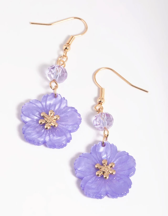 Purple Flower Drop Earrings