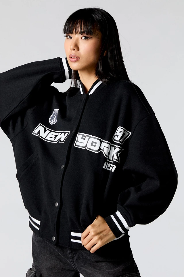 City Twill Embroidered Graphic Fleece Varsity Jacket