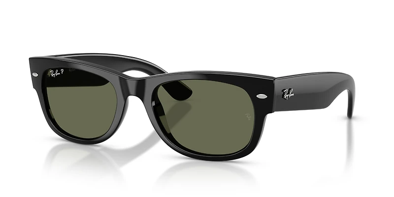 Meet the RB0832S Mega Wayfarer II, a bold reimagination of a Ray-Ban icon. These oversized square sunglasses in sleek black plastic preserve the unmistakable Wayfarer silhouette while amplifying its presence. Signature horizontal rivets and a solid green lens keep the design timeless yet fresh. Crafted with lightweight propionate temples, they're as comfortable as they are striking. Featuring Ray-Ban's legendary polarized lenses, enjoy a true-to-color view with reduced glare and advanced UVA/UVB protection. Classic just got louder.