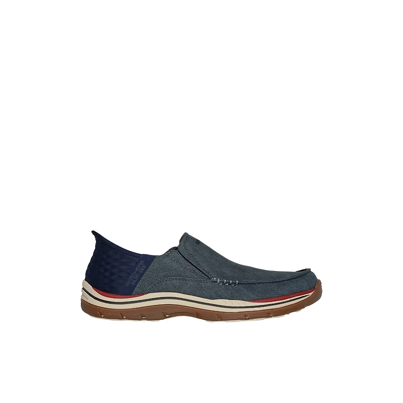 Find your island of style and comfort with the ease of Skechers Hands Free Slip-ins Relaxed Fit®: Expected - Cayson. Designed with our exclusive Heel Pillow™, this vegan moc toe slip-on features a canvas upper with twin gore panels, a hands-free molded heel panel, and a Skechers Air-Cooled Memory® Foam insole.
