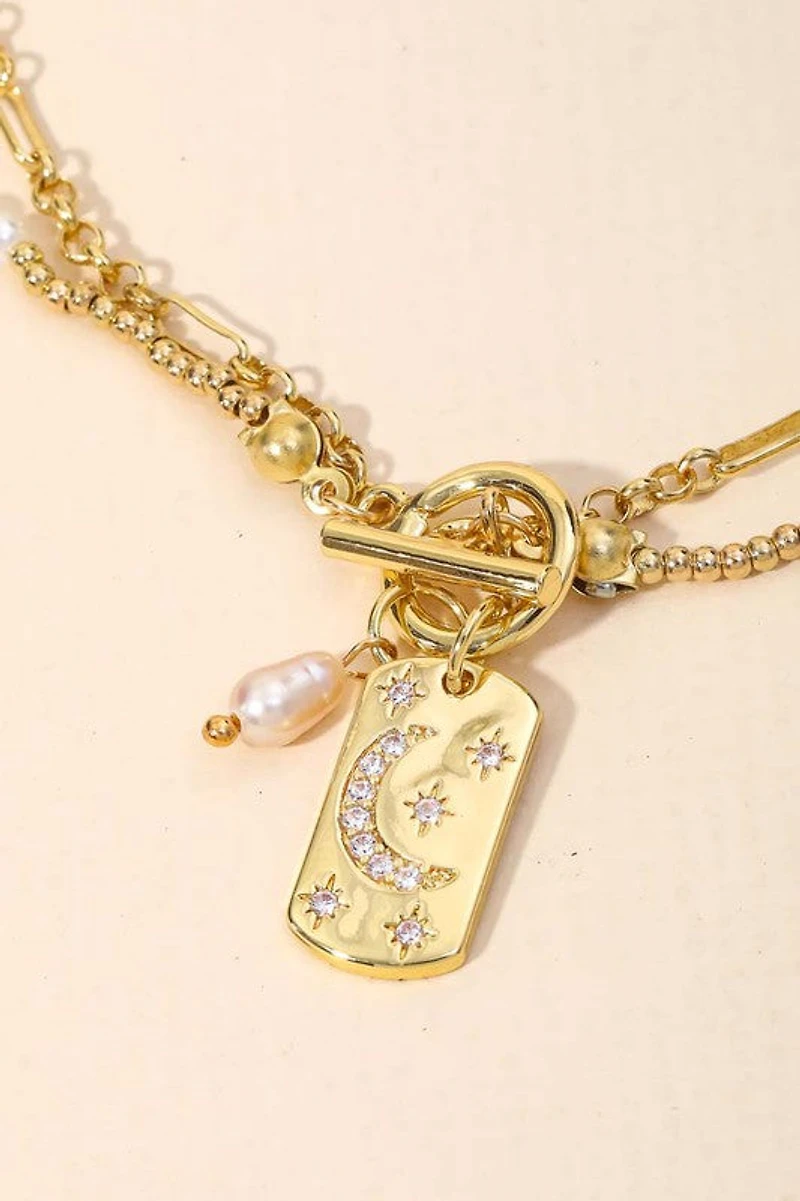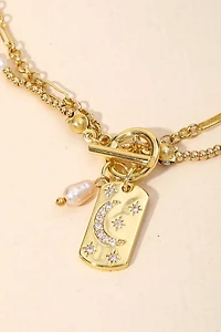 Reggie Rectangle Moon Pendant Toggle Chain Necklace