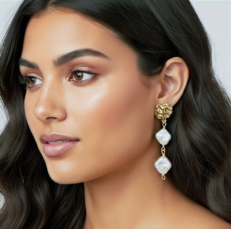 These Baroque Pearl Drop Earrings from Just Simply Perfect feature stunning Baroque Pearls in a unique petal shape with a lovely irregular texture, elegantly hanging from 14k gold filled studs. As Pearl Statement Earrings, they blend classic charm with modern style, making them perfect for both elegant looks and special occasions. Our Retro Freshwater Shell Earrings — Baroque Style — are crafted to highlight individuality while aligning with our commitment to quality and timeless design. Ideal for customers seeking distinctive Baroque Pearl Earrings that add sophistication to any outfit. Experience the beauty of Pearl Statement Earrings that truly embody elegance and local craftsmanship.