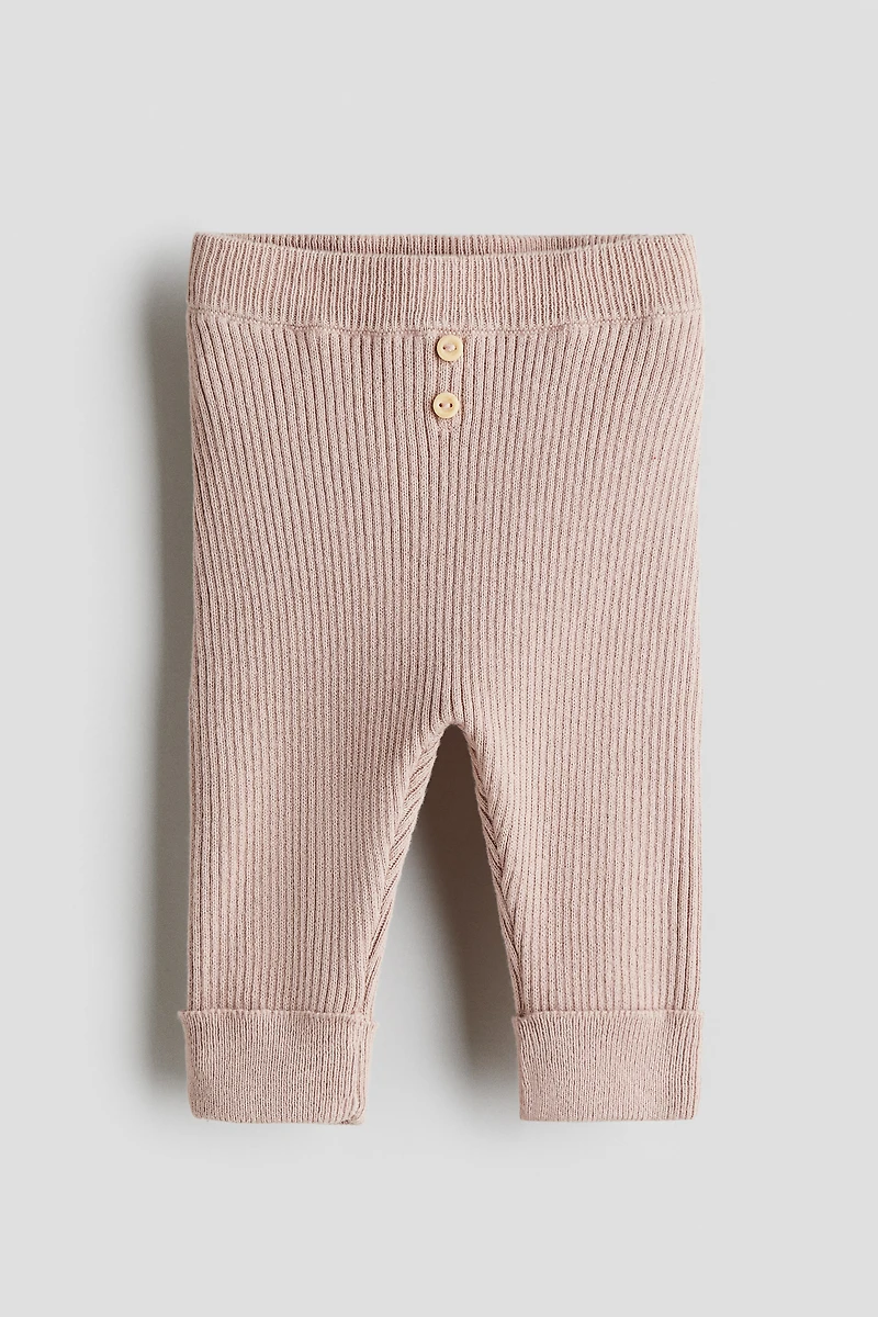 Rib-knit pants in cotton with decorative buttons at front. Elasticized waistband and foldover hems.