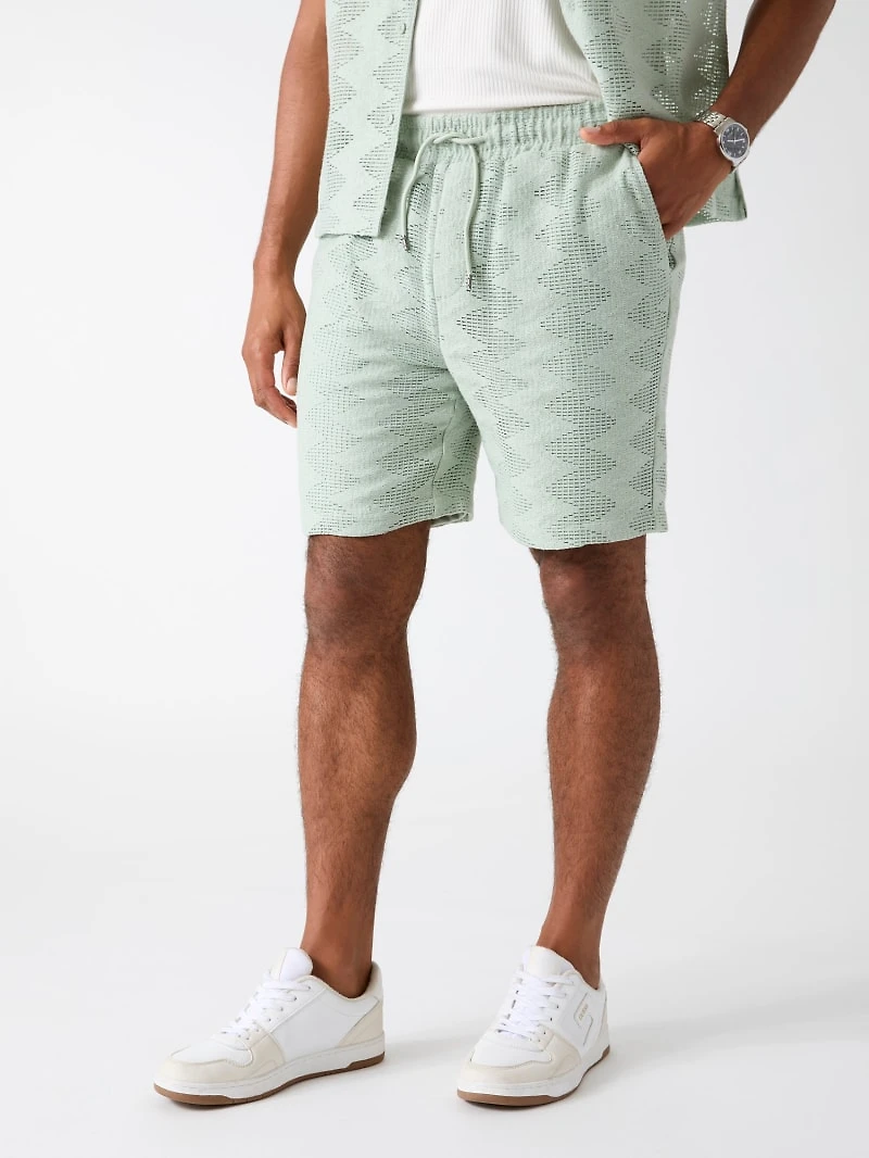 - Rib-knit shorts.