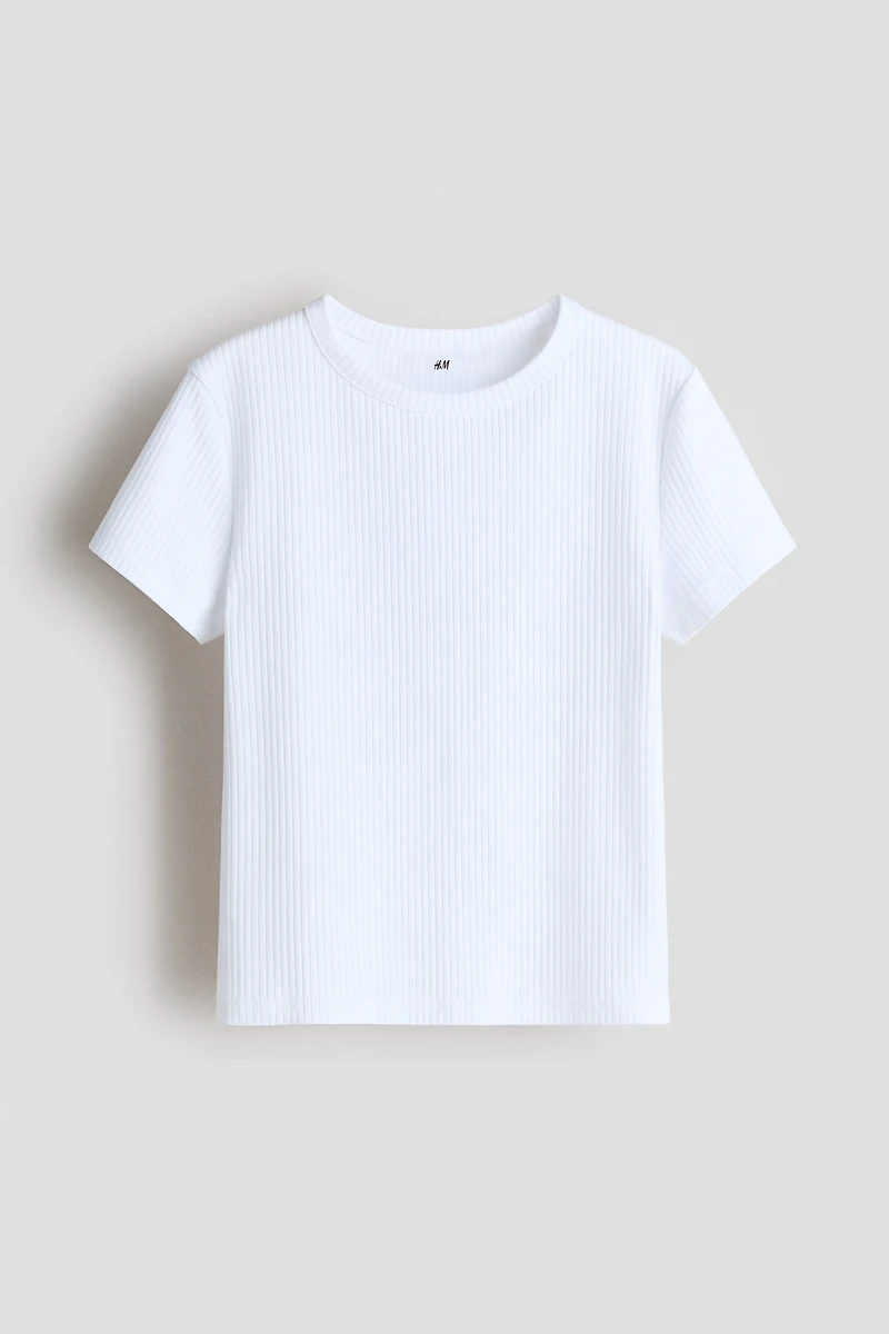 Top in soft, ribbed cotton jersey with a round neckline and short sleeves.
