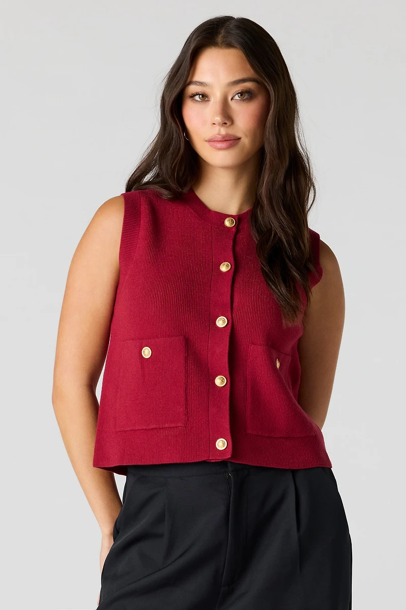 Ribbed Knit Button Front Vest Top
