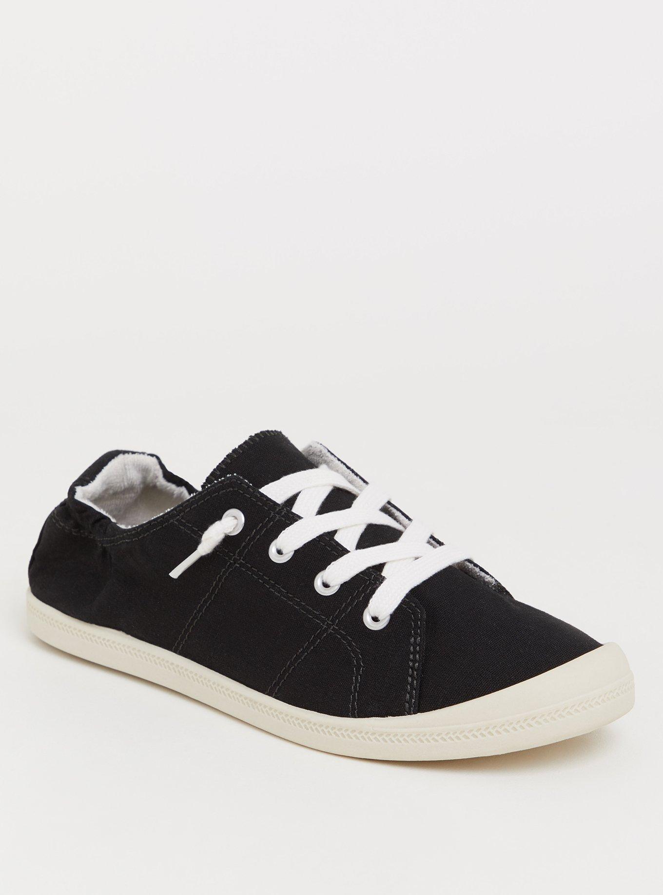FIT Extra wide width (WW): Our unique fit gives you extra wide width and extra room around your whole foot. Extra cushioned footbed. Back elastic ruching for added comfort. MATERIALS + CARE 100% cotton upper, rubber sole. Imported. DETAILS Low-top sneaker. Lace up upper.