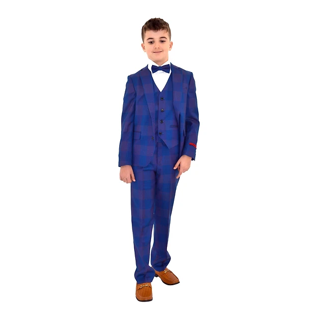 Ronaldo Blue Purple Plaid Designer Skinny Grad 5 pc Suit