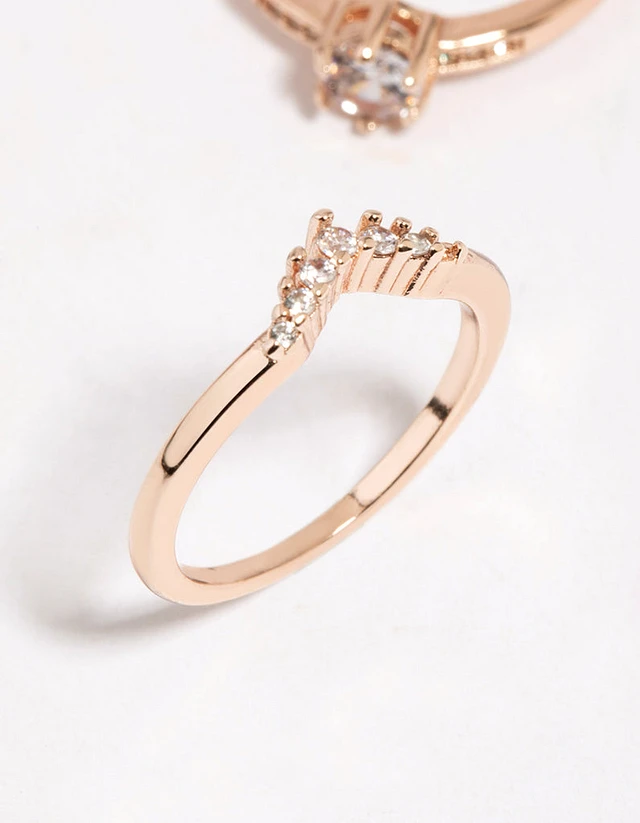 Rose Gold Plated Cubic Zirconia Engagement Style Ring Set