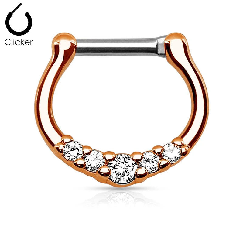 Rose Gold PVD 5 Prong White CZ Septum Ring Surgical Steel Bar Clicker