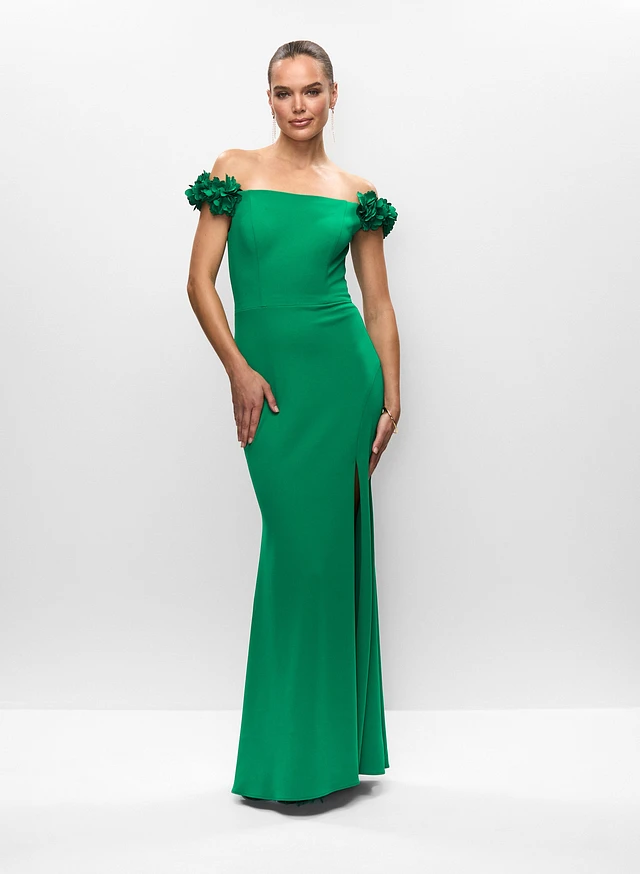 Rosette Off-Shoulder Dress & Stone Cascading Earrings