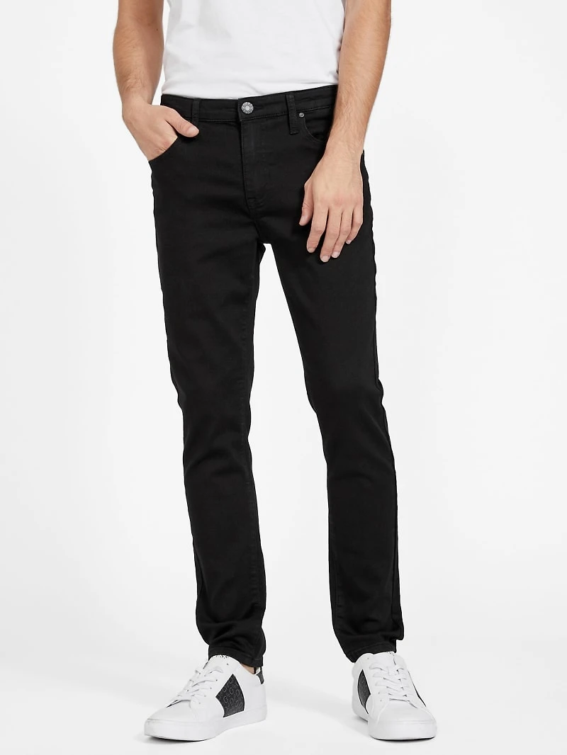 An essential everyday pair of jeans featuring a skinny fit and five-pocket construction in a classic black rinse wash.