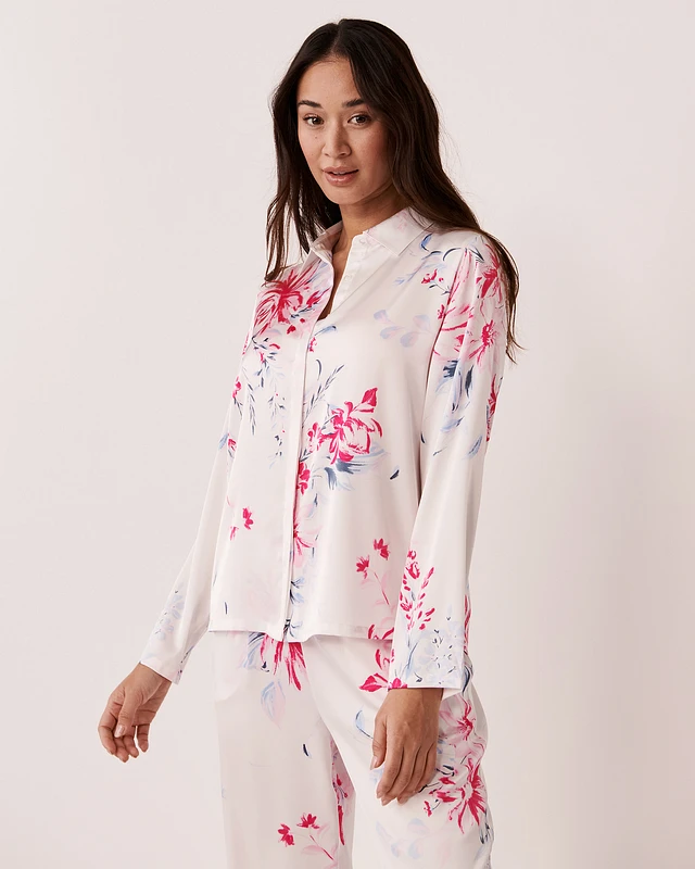 Satin and Lace Trim Long Sleeve Button-down Shirt