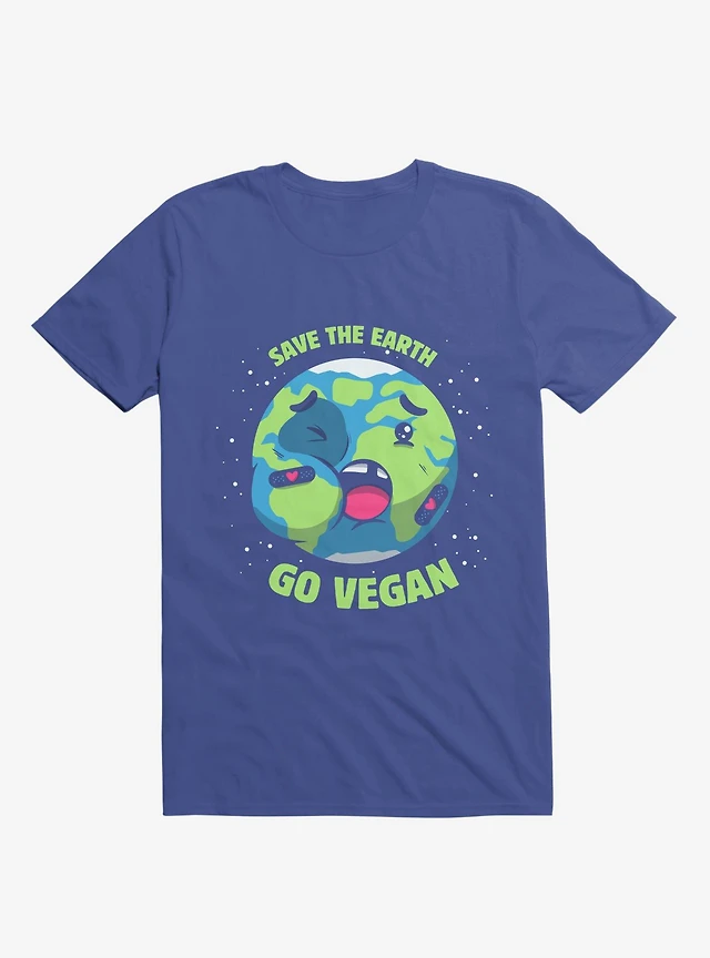 Save The Earth Go Vegan Royal Blue T-Shirt