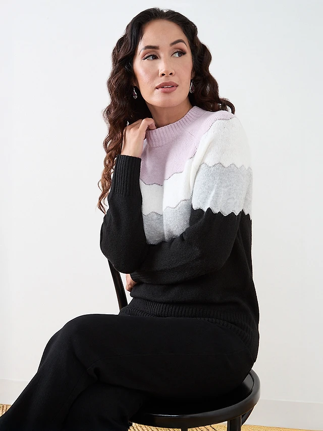 Scalloped Stripe Mock Neck Pullover
