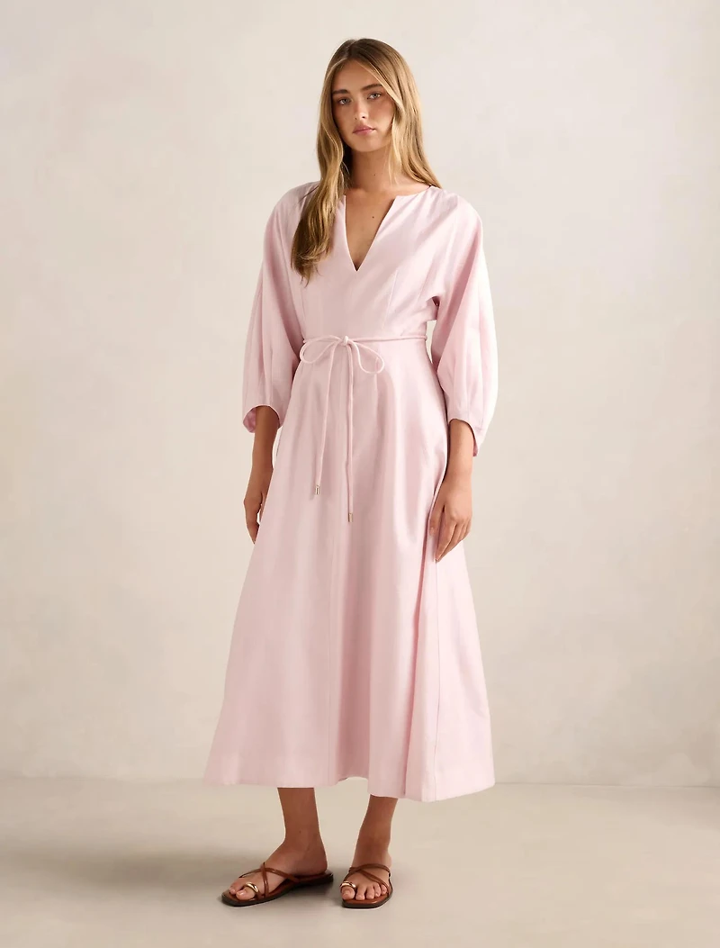 A flowy midi dress to pair with sandals and a soft-toned tote, perfect for weekend brunch vibes and casual catchups.