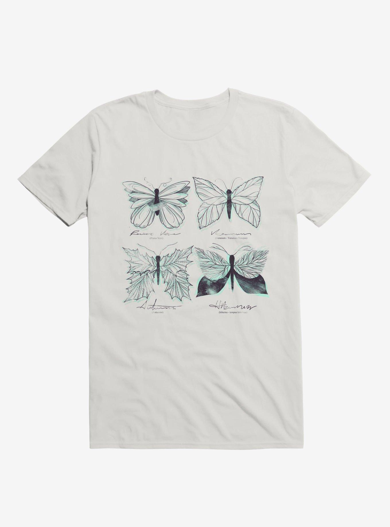 Time flies like a butterfly. So celebrate the change from one season to the next with this lightweight white graphic tee. It features butterflies with leaf-like wings. Officially licensed art from Tobe Fonseca.