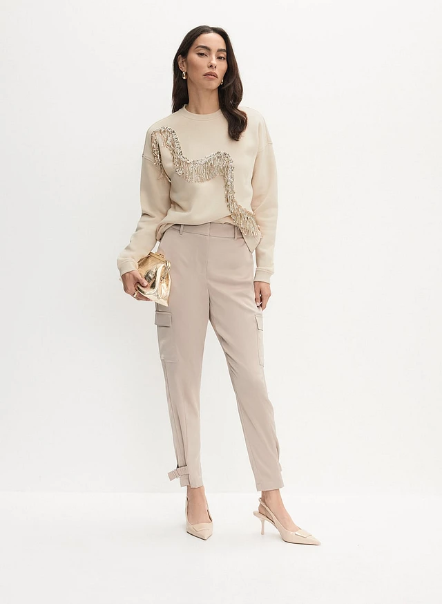 Sequin Detail Sweatshirt & Satin Buckle Detail Cargo Pants