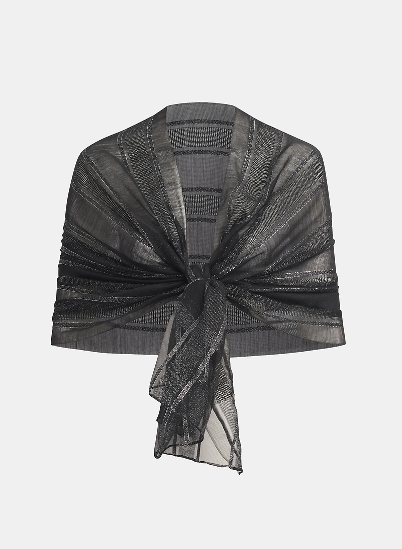 Add elegance to your look with our sheer evening wrap, the perfect accessory to elevate your outfit.Metallic detailWool & silk blendDimensions: 27" x 70"