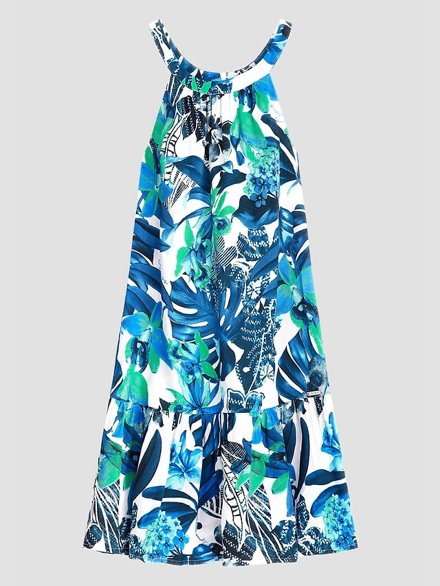 Printed Sleeveless Fit and Flare Maxi Dress for Girls