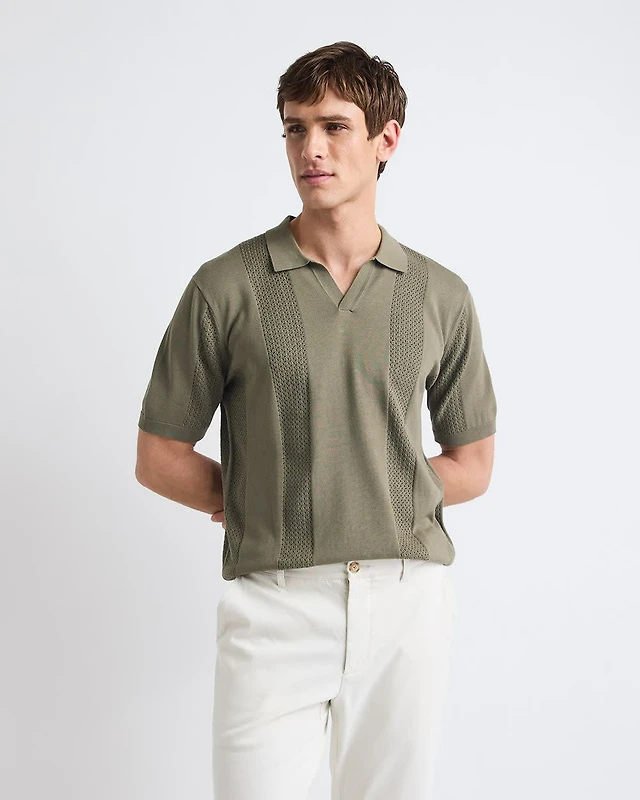 Short-Sleeve Johnny Sweater with Two-Tone Vertical Stitches