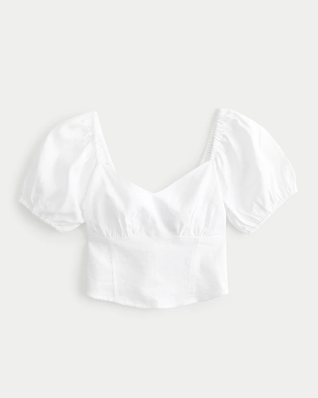 Short-Sleeve Linen-Blend Ruched Bust Top