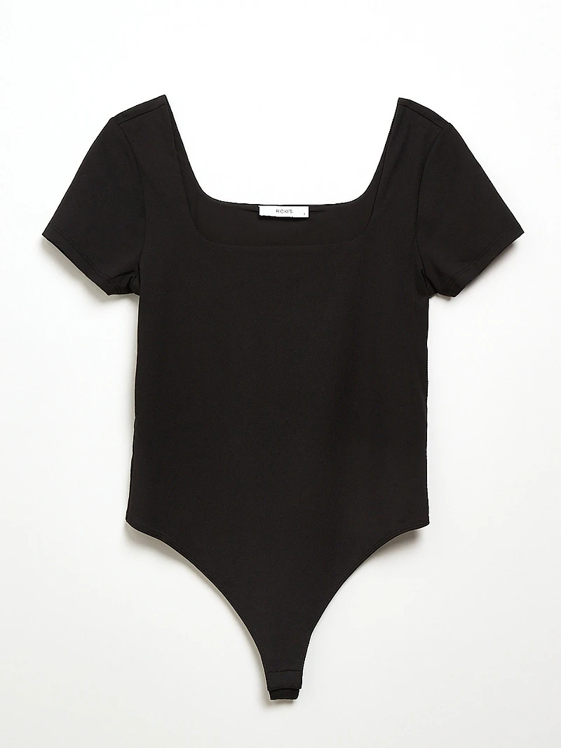 Short Sleeve Square Neck Bodysuit Black
