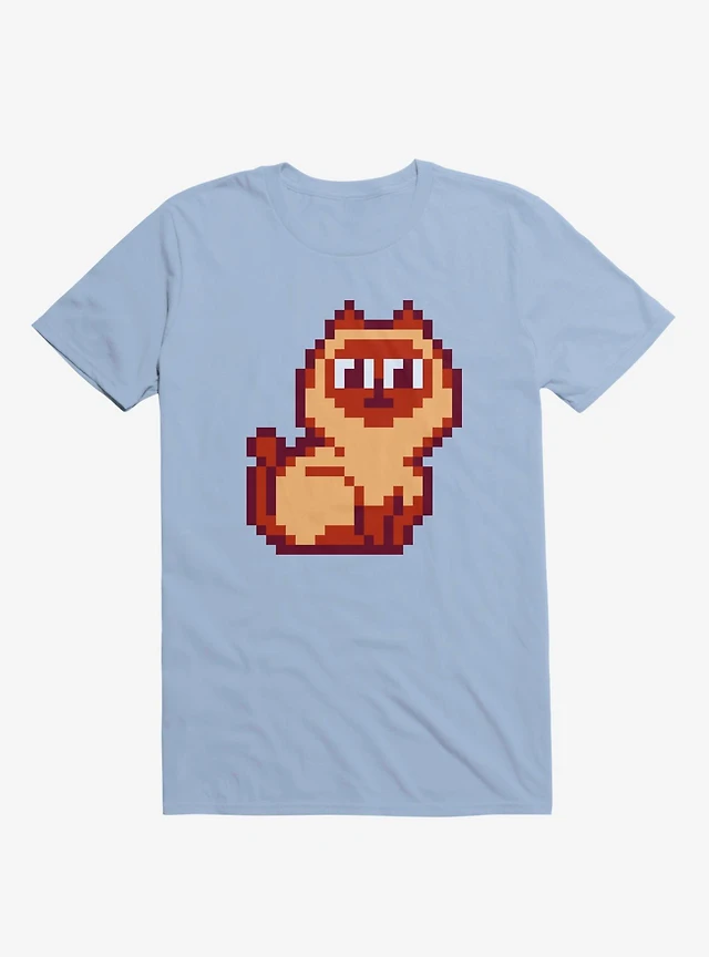 Siamese Cat Pixel Art Light Blue T-Shirt