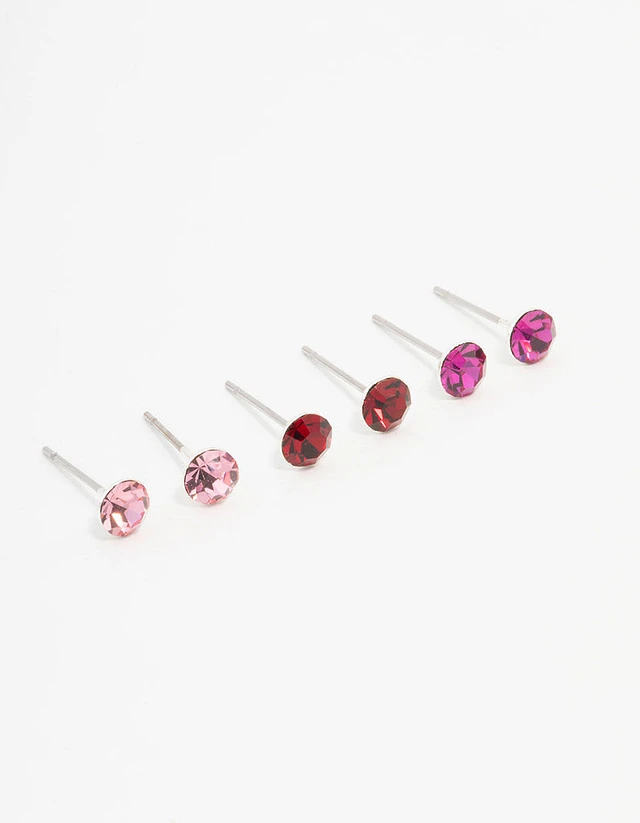Silver Diamante Mixed Size Stud Earrings 3-Pack