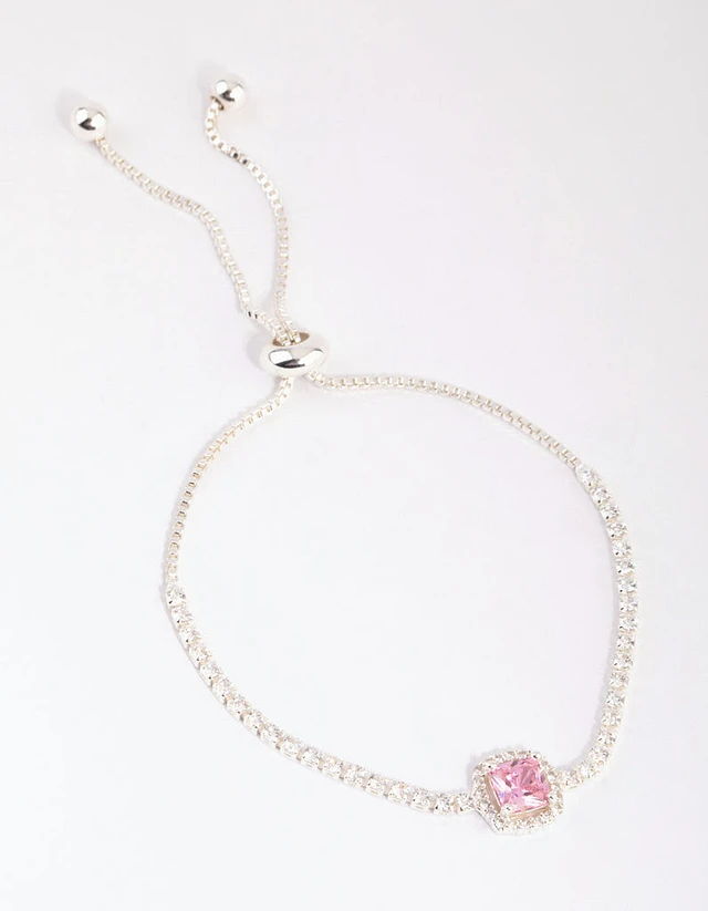 Silver Cubic Zirconia Square Halo Toggle Bracelet