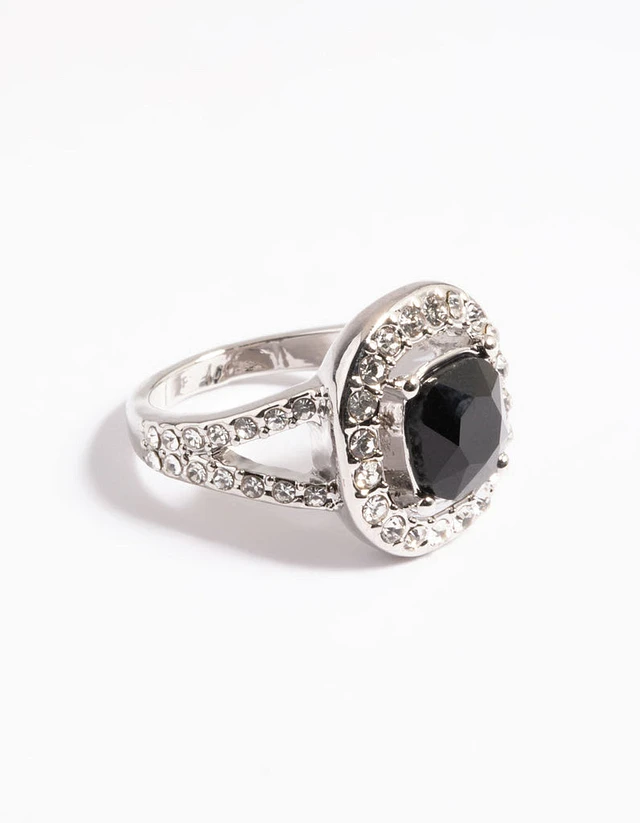 Silver Cubic Zirconia Centre Stone with Halo Ring