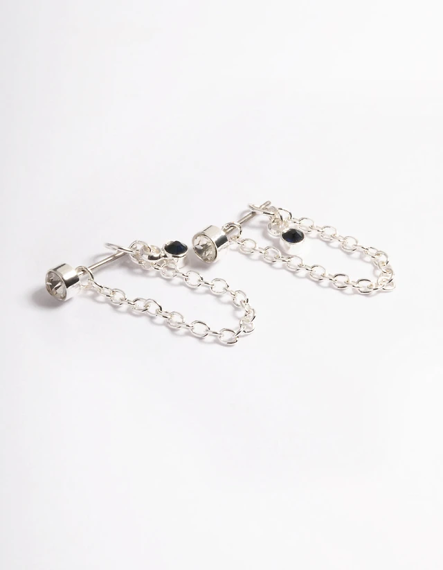 Silver Diamante Chain Front & Back Earrings