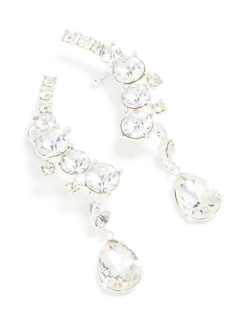 Silver Diamante Drop Ear Cuffs