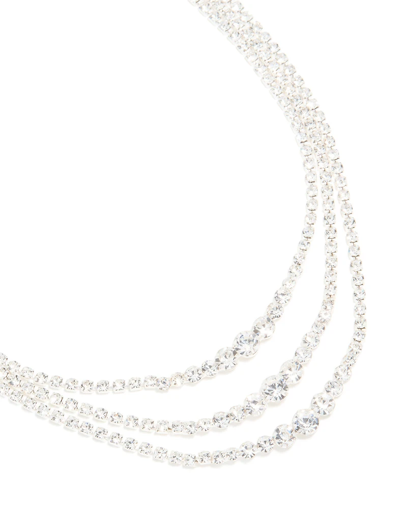 Silver Diamante Triple Layered NecklaceSilver Diamante Triple Layered NecklaceSilver Diamante Triple Layered Necklace