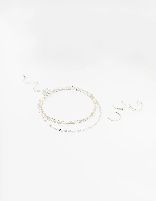 Silver Dumbell Anklet & Toe Rings Set