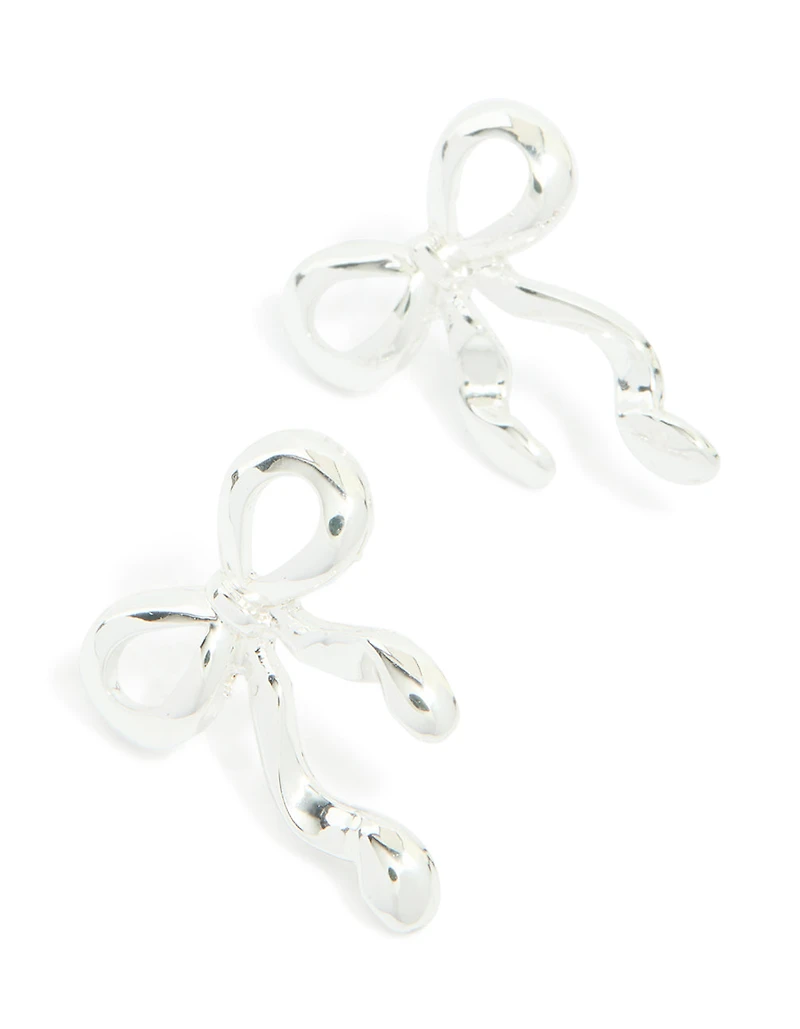 Silver Long Ribbon Bow Stud Earrings in Brampton, ON